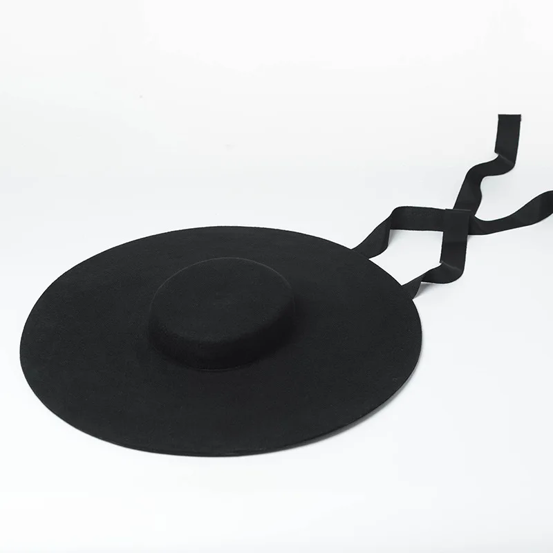 4Cm Hat High Wool Hat Oversized 15Cm Big Brim Shallow Top Shallow Top Fedora Hat Men and Women Flat Top Hat New Big Brim Hat